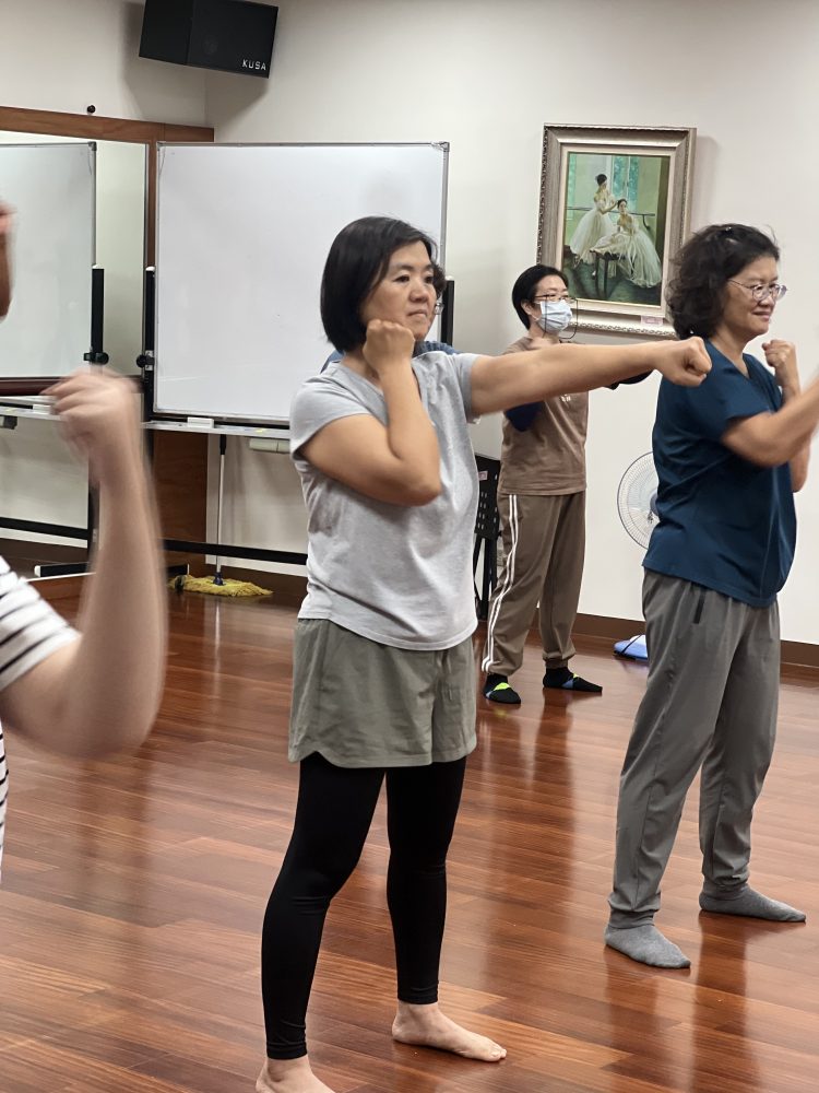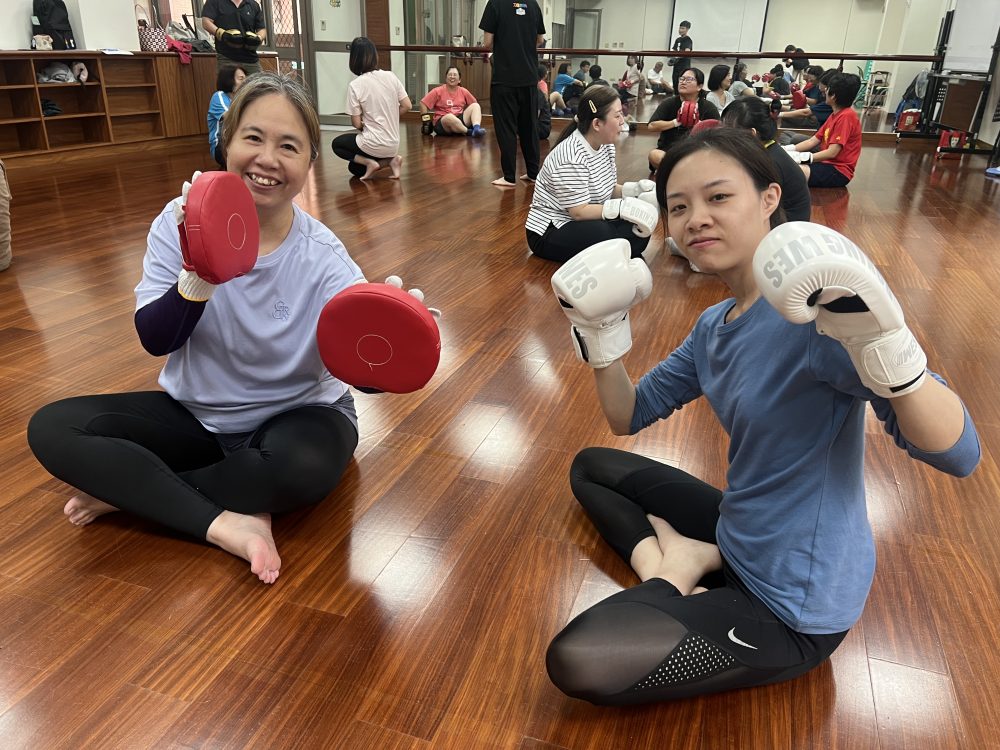 在拳擊體驗環節,學員分組練習基本動作,包括拳擊姿勢、防守、直拳與迴避。吳宜霏老師強調,拳擊並非為了「打贏誰」,而是透過出拳時的專注、站穩時的核心啟動、閃避時的敏捷,讓女性重新連結自己的身體。