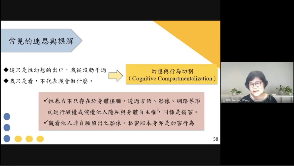 課程花了相當篇幅破除社會對數位性別暴力的迷思: