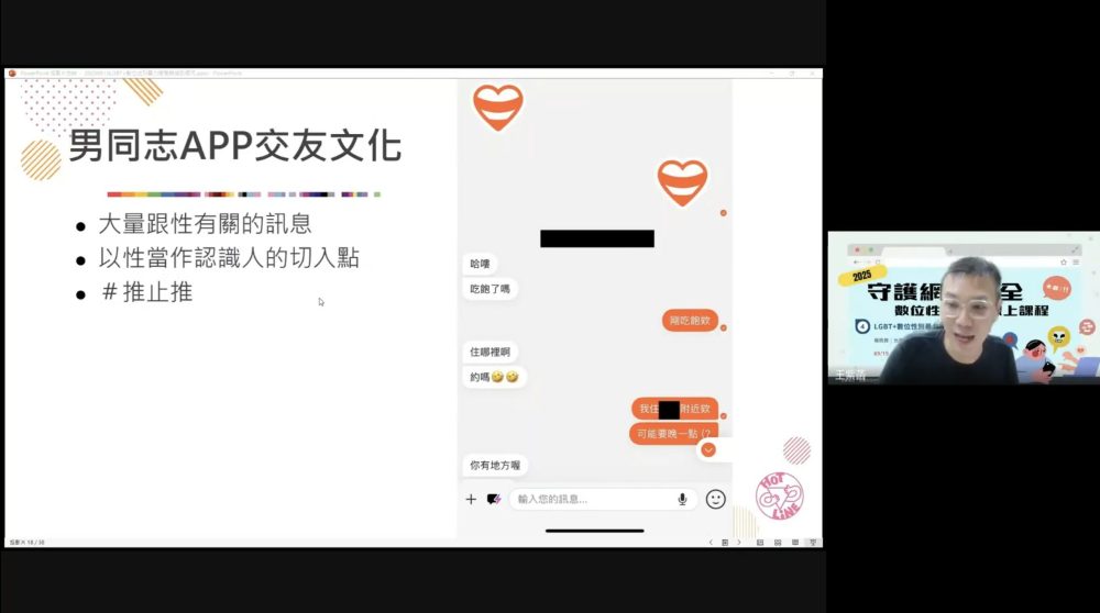 講師楊掁賢坦言,由於整個社會系統的不友善、對多元性別文化的不理解、法規程序的模糊不清,常常導致受害者求助時反而受到譴責,但近年有賴各界有志人士、非政府組織、圈內夥伴的齊心協力,持續投入性與親密關係、社群處境與文化的教育與宣導、去除對性的汙名等工作,並積極研議、發展同志數位性別暴力防治工作與服務,在邊做邊學中循序漸進改善數位性別環境。